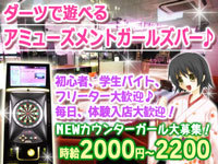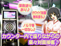 | 先輩スタッフから一言 | ダーツやゲーム好き!集まれ♪ワイワイ楽しくにぎやかに楽しみながら稼げますよ♪駅前で通いやすいですよ♪ガールズバーですけど帰りは送りもあります。無休営業だからいつでも好きな時に稼げます♪友達に一緒に応募、一緒に勤務も大歓迎です!お気軽にご応募下さい♪ |
